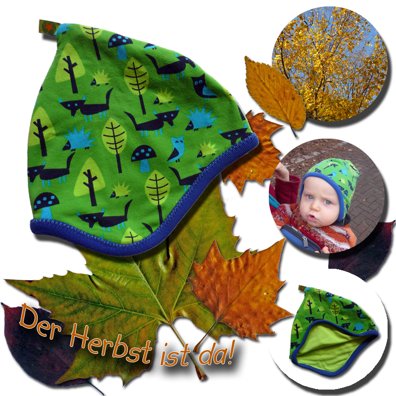 So nun ist es amtlich. Die Blätter werden bunt, die Tage kürzer und das Wetter kälter, der Herbst ist da! Schon vor einer kleinen Weile entstanden: eine Wendezipfelmütze, die ich euch heute vorstellen möchte. Der Schnitt ist von klimperklein und der Stoff von Blaubeerstern, den ich in einem örtlichen Stoffladen erstanden habe. Von innen ist die Mütze einfarbig grün und ohne Webbandzipfel, da ich sie wohl eher selten wenden werde.