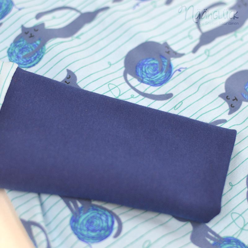 *Ich habe den hier gezeigten Stoff mit den Katzen, den Streifen und das Bündchen kostenlos zur Verfügung gestellt bekommen