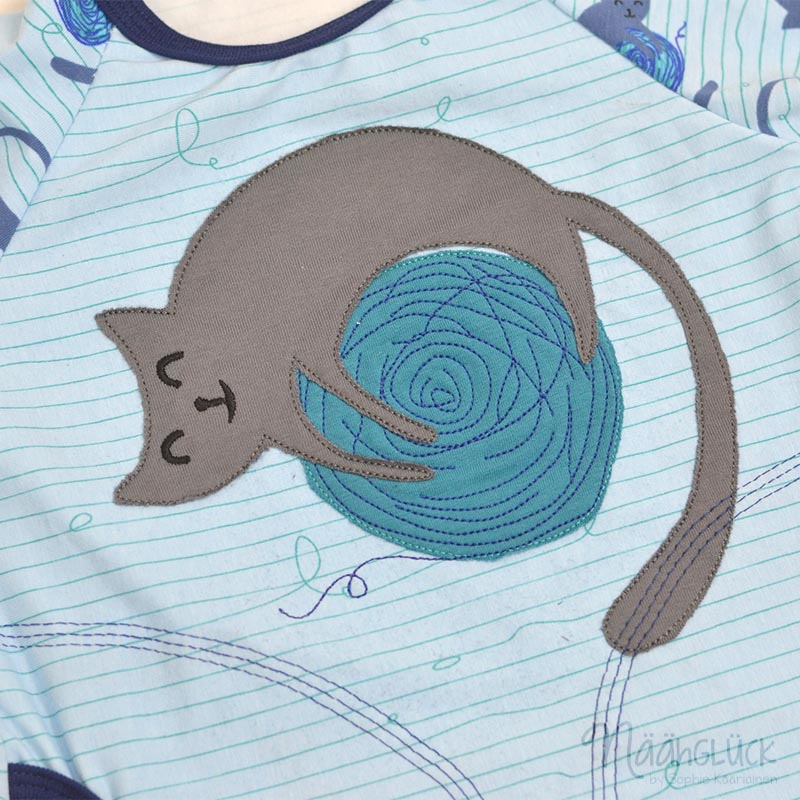 Der Jersey ist gewohnte super Qualität und das Motiv lieben beide Kinder. Auch wenn meine Kleine der Meinung ist, dass Wollknäuel meiner Applikation sei eine Schnecke. Aber damit kann ich denke ich leben.