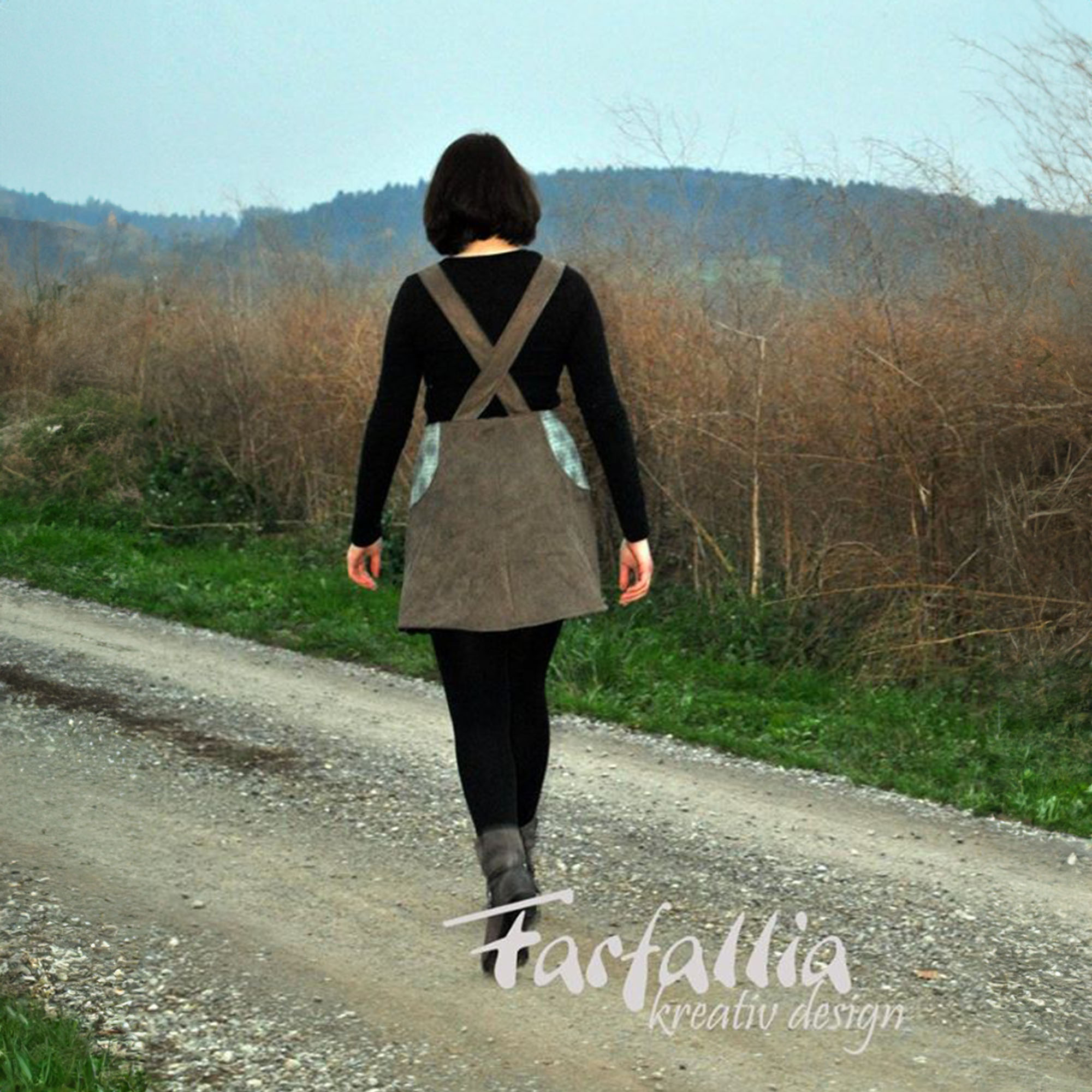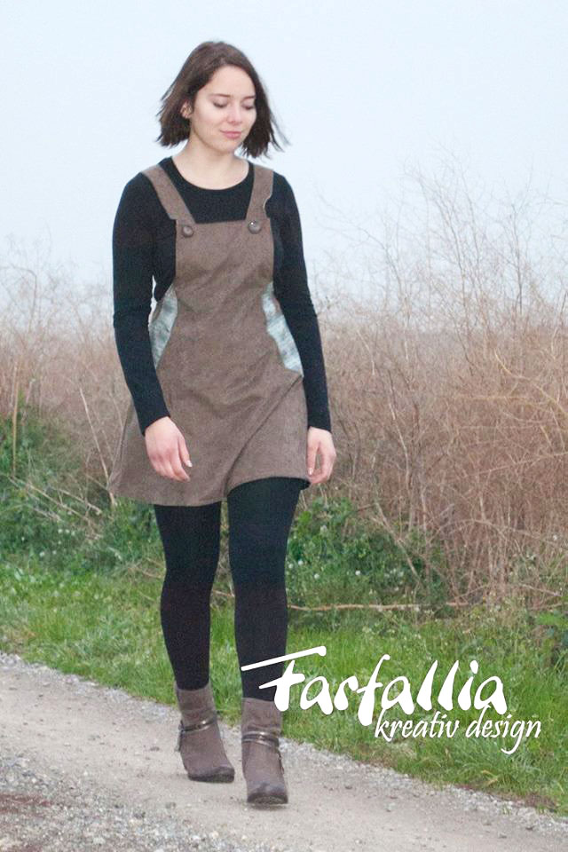 Latzkleid Elina – Doppelgrößen 32/34 – 52/54, Hosenrock mit Taschen