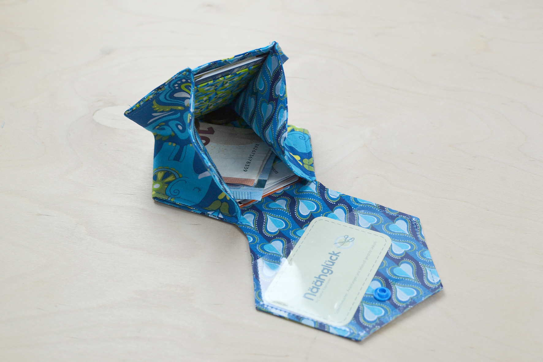 Hexmex ist eine kleine sechseckige Geldbörse. Den Schnitt gibt es in zwei Größen und im eBook werden verschiedene Verschlussmöglichkeiten vorgestellt. Individuell könnt ihr euch bis zu 6 Einsteckfächer an eure Hexmex annähen.